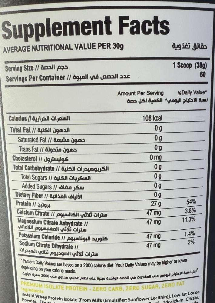 بروتين مصل اللبن المعزول Laperva ISO TRIPLE ZERO: تركيبة مصل اللبن المعزولة عالية الجودة مصممة للرياضيين وعشاق اللياقة البدنية.؛ توفر كل حصة بروتينًا سريع الامتصاص لدعم تعافي العضلات ونموها وأدائها - بدون إضافات غير ضرورية.؛ الميزات الرئيسية: 💪 27 جرامًا من بروتين مصل اللبن النقي - عزل عالي الجودة وببتيدات لدعم العضلات الهزيلة.؛ ⚡ 5.5 جرام من BCAA + 4 جرام من الجلوتامين - يعزز التعافي بشكل أسرع ويقلل من إجهاد العضلات.؛ 🧬 خالٍ من السكر واللاكتوز والغلوتين - تركيبة نظيفة للأفراد الحساسين.؛ 🍫 نكهات لذيذة - متوفرة بالشوكولاتة رائعة المذاق.؛ 🔥 تركيبة منخفضة الكربوهيدرات - مثالية لأولئك الذين يتبعون خطة غذائية واعية بالسعرات الحرارية أو منخفضة الكربوهيدرات.؛ 🏋️ يدعم بناء العضلات الهزيلة - مثالي للتعافي بعد التمرين وإدارة الوزن. ✅ سهل الهضم - امتصاص سريع بدون فول الصويا أو إضافات ثقيلة. مثالي لأولئك الذين يهدفون إلى البقاء لائقين أو تقوية أو تحسين أدائهم الرياضي!