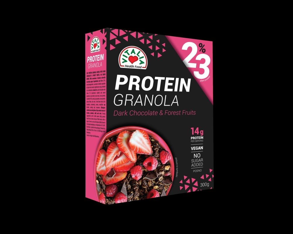 جرانولا بروتين بنكهة شوكولاتة و فواكه الغابة، بدون سكر 300 غرام VITALIA PROTEIN GRANOLA